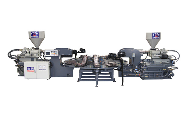 臥式鞋底機(jī)采用變頻運(yùn)行技術(shù),變頻器實(shí)時(shí)檢測(cè)來(lái)自電腦程序控制板的壓力及流量信號(hào) 。當(dāng)圓盤機(jī)壓力或流量信號(hào)在 0~1A 范圍內(nèi)時(shí),經(jīng)內(nèi)部處理后,輸出不同的頻率來(lái)調(diào)節(jié)電 機(jī)轉(zhuǎn)速,這樣就實(shí)現(xiàn)了輸出功率與壓力和流量同步自動(dòng)跟蹤控制,相當(dāng)于將定量泵變成了 節(jié)能型的變量泵。原液壓系統(tǒng)與整機(jī)運(yùn)行所需功率得以匹配,消除了原系統(tǒng)的高壓溢流能 量損失。例如,在實(shí)際生產(chǎn)中,鞋底機(jī)在注塑過(guò)程中的鎖模、射料、熔膠、開(kāi)模、圓盤快 慢速等各個(gè)動(dòng)作對(duì)速度、壓力的要求不同,通過(guò)這種變頻技術(shù)能夠根據(jù)實(shí)際需求調(diào)整輸出 功率,大大提高了能源利用效率。